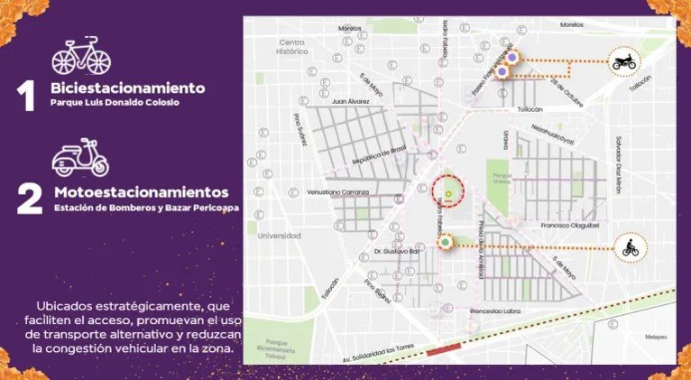 Estas serían las rutas que estarán al servicio de la población para el regreso a casa seguro, las tarifas están por confirmarse. Para quienes asistan en motocicleta, se dispondrán dos zonas de estacionamiento con costo: una junto a la Estación Central de Bomberos y otra en Bazar Pericoapa. La única modalidad gratuita será la bicicleta.
