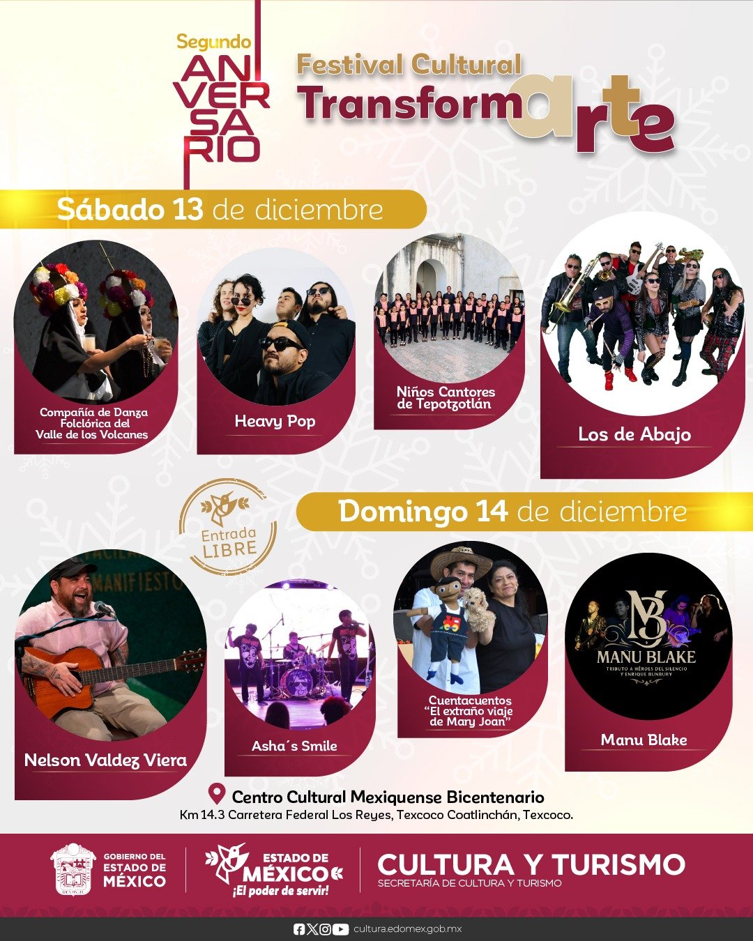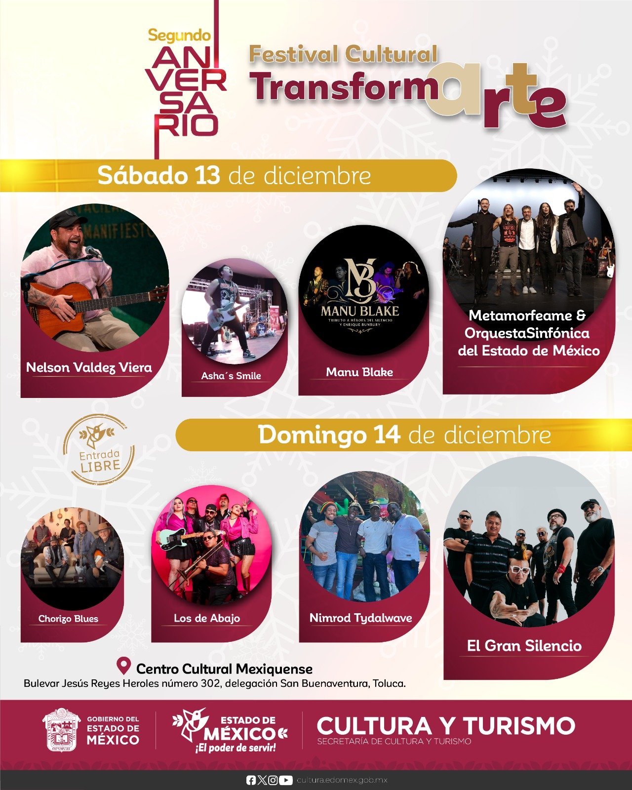 El Festival TransformARTE llegó a su segundo aniversario consolidado como una de las iniciativas culturales más activas del Estado de México. De acuerdo con la Secretaría de Cultura y Turismo, en dos años ha realizado 300 actividades artísticas gratuitas en las sedes del Centro Cultural Mexiquense de Toluca y del Centro Cultural Mexiquense Bicentenario de Texcoco, con la participación acumulada de más de 69 mil personas.