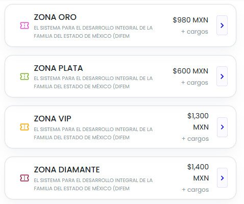Los precios de las entradas oscilaban entre los 600 y 1,400 pesos, sin incluir cargos por servicio, dependiendo de la ubicación dentro del recinto.