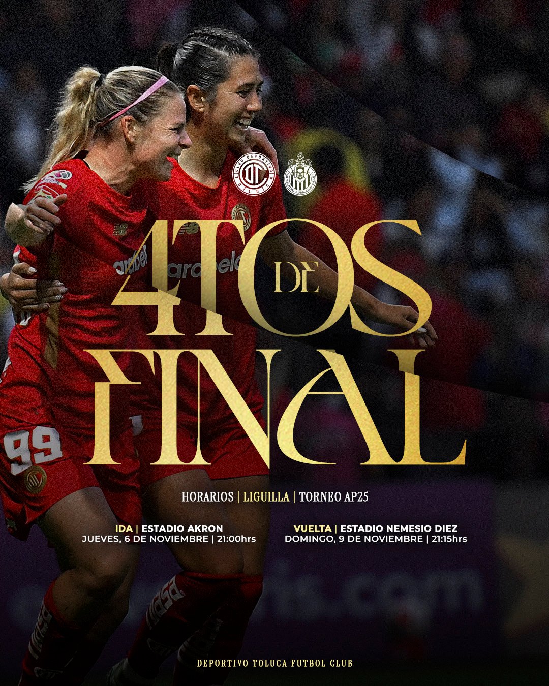 Toluca se enfrentará a las Chivas de Guadalajara, quintas en la tabla con 32 puntos. El equipo tapatío, campeón del Clausura 2023, representa un reto importante por su experiencia y solidez, aunque las Diablas llegan con su mejor racha goleadora (más de 40 tantos) y una defensa que solo permitió 18 goles en toda la fase regular.