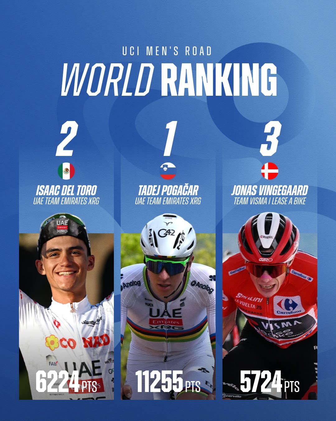 Ese rendimiento le permitió escalar del tercer al segundo puesto del ranking UCI, superando a corredores como Jonas Vingegaard.