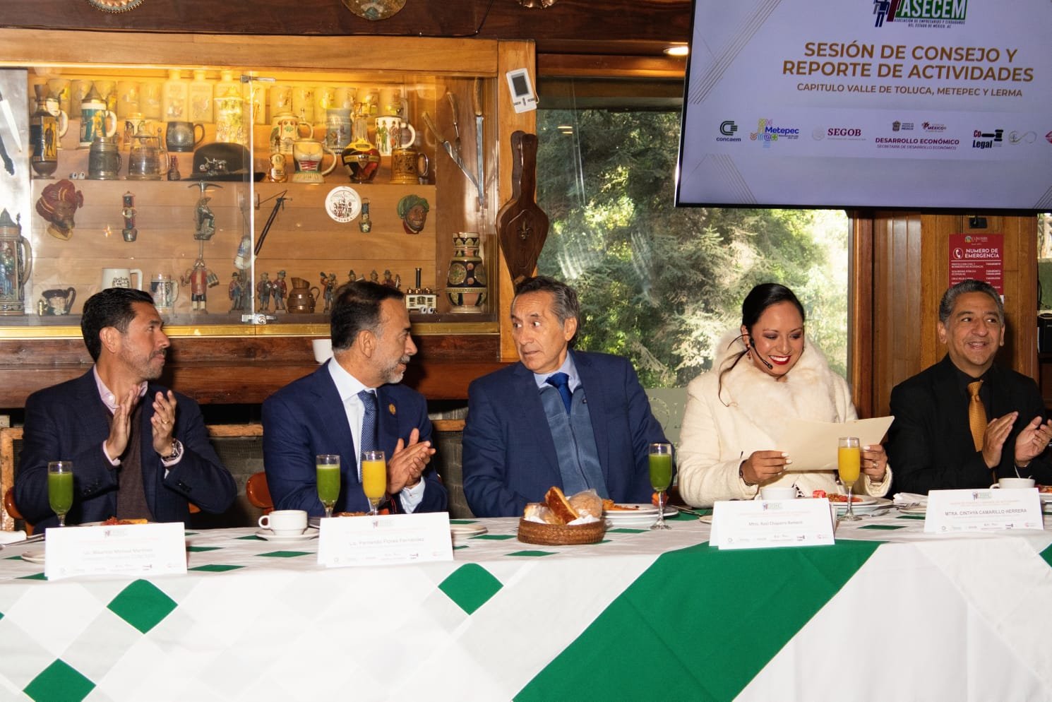 El encuentro fue encabezado por el presidente nacional de Asecem, Raúl Chaparro Romero, quien destacó que la organización mantiene vínculos sólidos en todas las regiones del Estado de México, lo que ha permitido generar negocios, defender los intereses del sector y fortalecer el trabajo colaborativo con las autoridades.