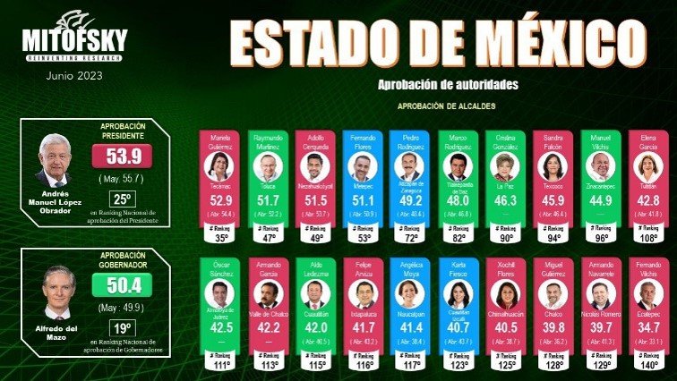 En junio de 2023, el alcalde mexiquense escaló 4 posiciones en el ranking, pasando del lugar 51, que ocupó en abril, al lugar 47 para el tercer trimestre del 2023, lo cual lo posiciona como el segundo mejor calificado del Estado de México.