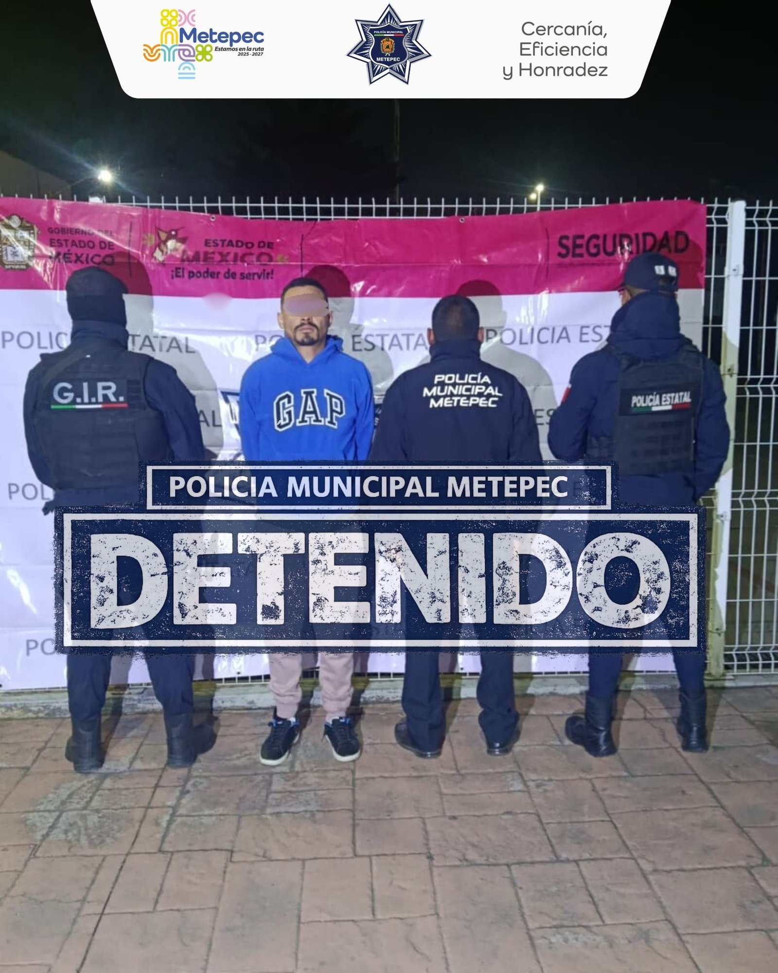 Elementos de la Policía Municipal de Metepec, en coordinación con la Secretaría de Seguridad del Estado de México, detuvieron a un hombre señalado por su presunta responsabilidad en los delitos de lesiones y maltrato animal, tras un incidente ocurrido durante una riña.