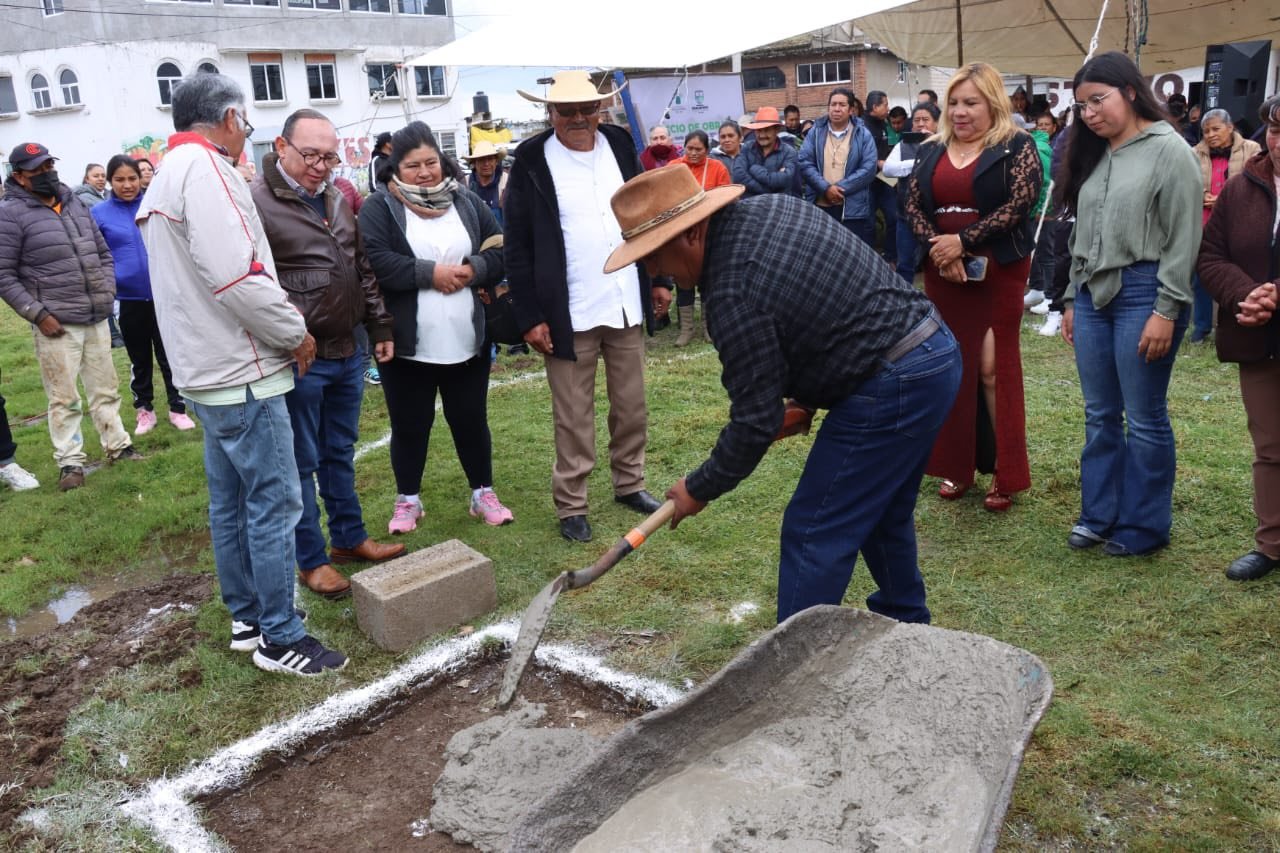 El presidente municipal de Zinacantepec, Manuel Vilchis Viveros, supervisó el inicio de la obra para la construcción de un kiosco y una plaza cívica en la Delegación de San Bartolo El Llano, en la comunidad de Santa María del Monte.