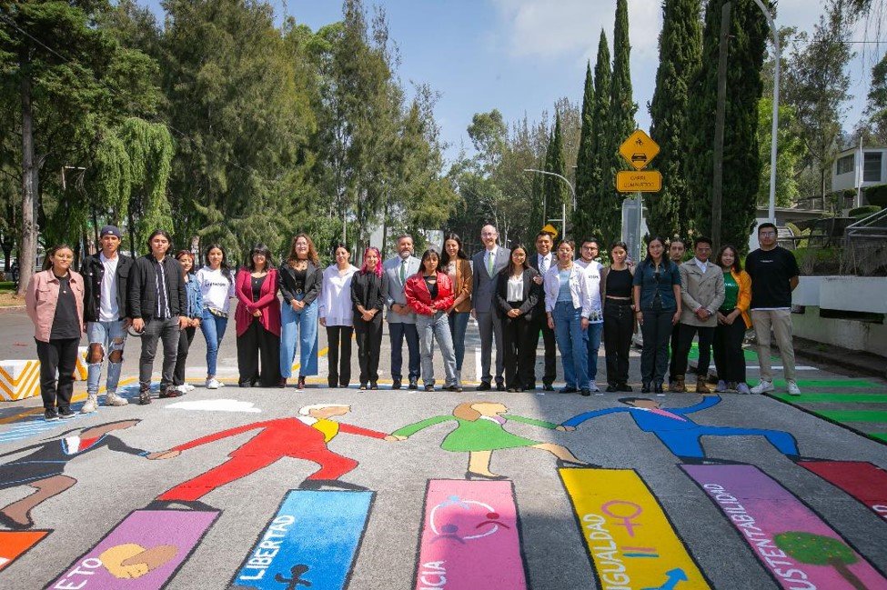 Como parte de la inauguración, el estudiantado que participó en el diseño y pinta de las cebras peatonales recibió un reconocimiento por parte de las autoridades.