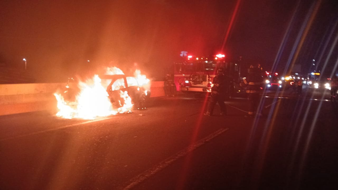 Este martes, un vehículo se incendió sobre los puentes de Paseo Tollocan, en dirección a Ciudad Universitaria, a la altura del puente Vicente Guerrero.