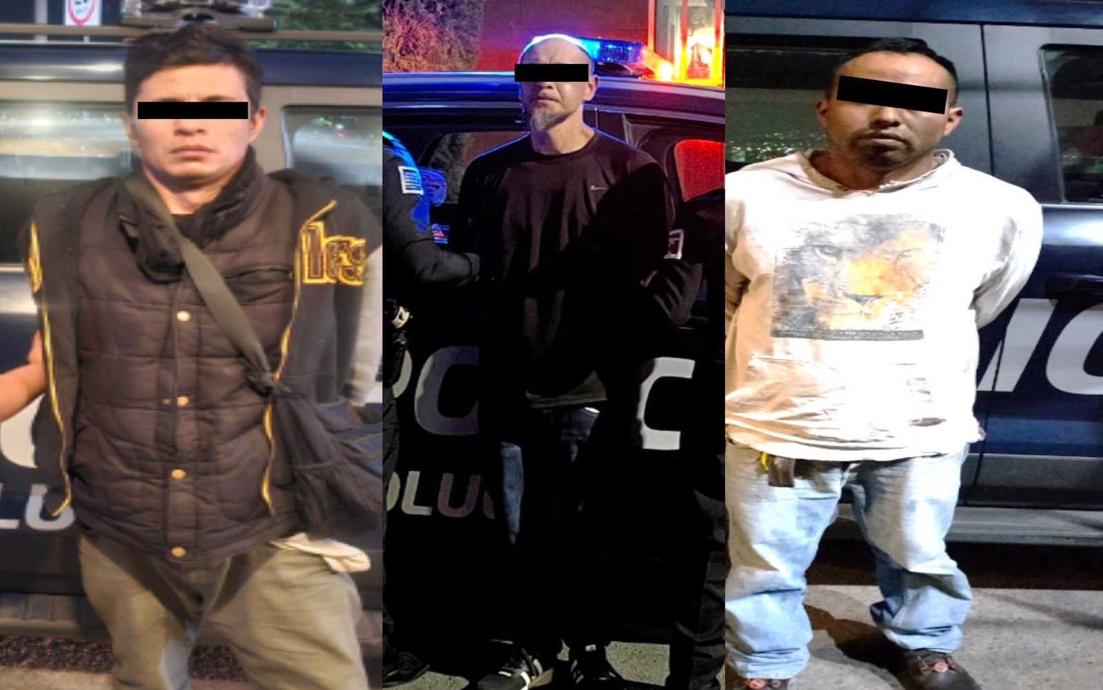 En tres operativos distintos, elementos de la Policía Municipal de Toluca detuvieron a tres hombres acusados de diversos delitos de alto impacto, tras la rápida atención a denuncias ciudadanas.