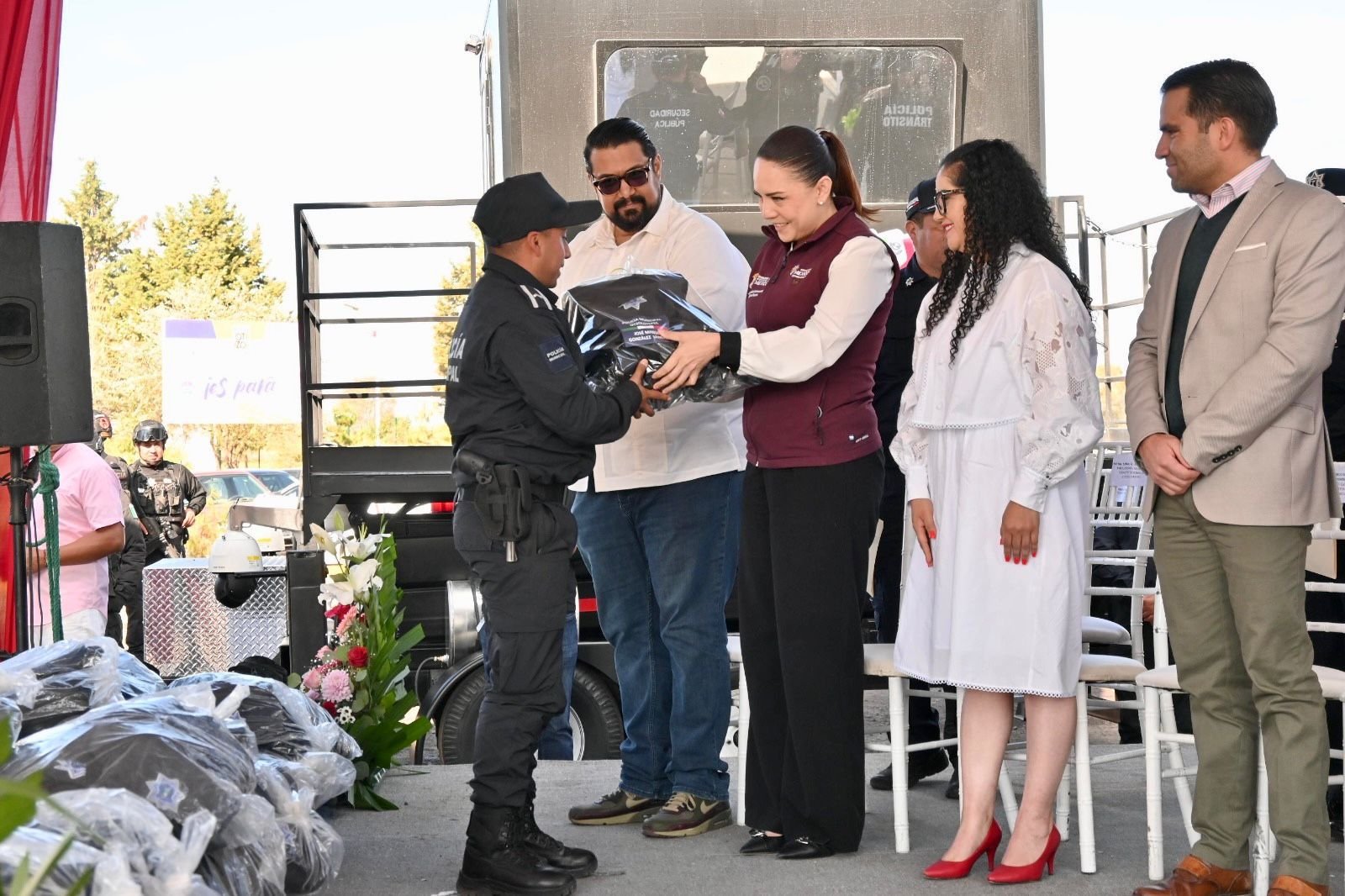 Durante el acto también se entregó una torre móvil de vigilancia, una patrulla y una retroexcavadora para reforzar las labores de seguridad y servicios municipales. Asimismo, en sesión extraordinaria de cabildo se tomó protesta a Laura Retana López como nueva directora de Seguridad Pública de Otzolotepec.