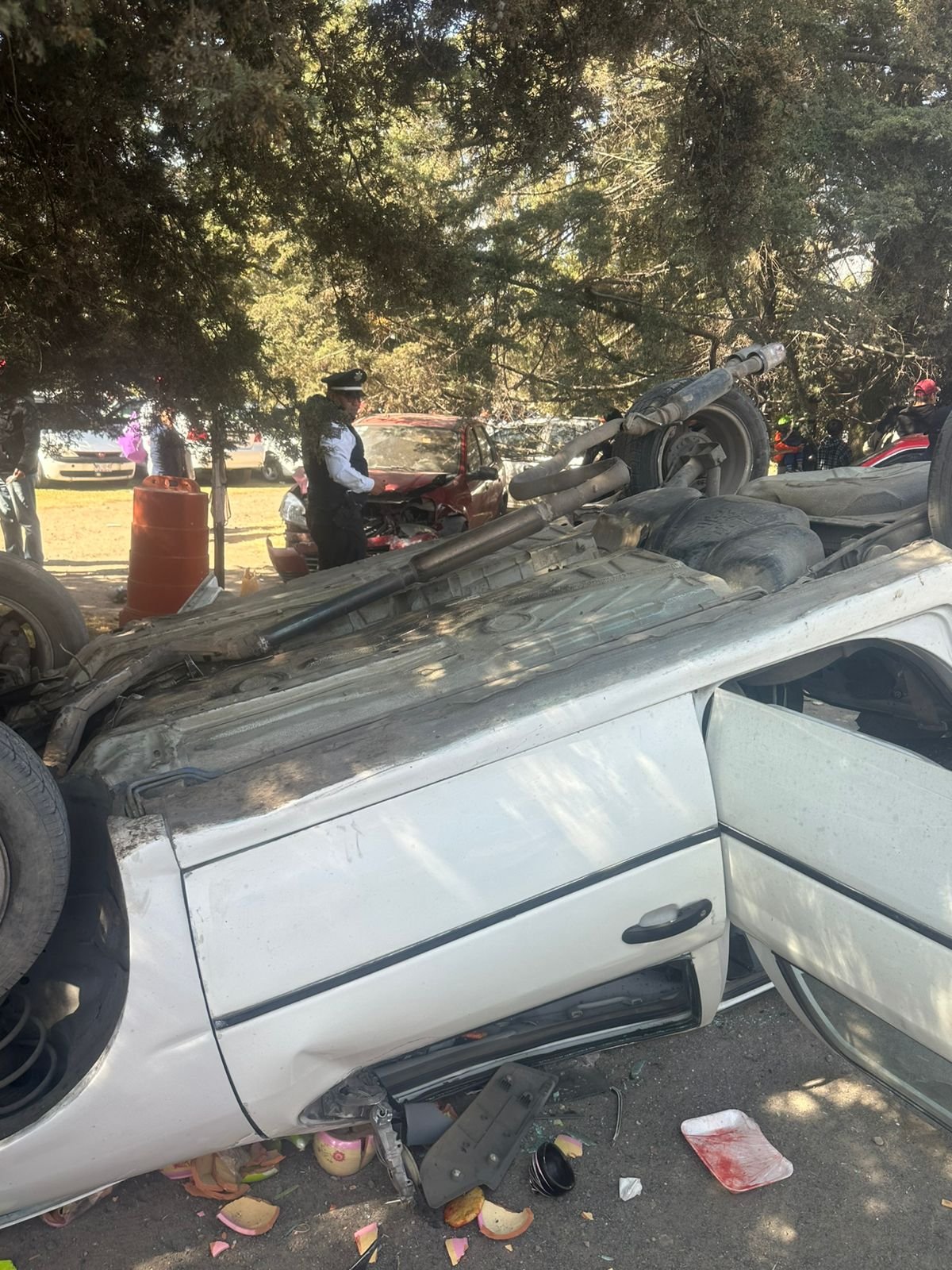 De acuerdo con la información oficial, el percance ocurrió a la altura del Mercado de Palmillas, en la colonia 21 de Marzo, perteneciente a la delegación San Martín Toltepec. En el lugar, un automóvil Volkswagen Pointer fue impactado por un camión de pasajeros de la línea Flecha Roja, lo que ocasionó que el vehículo saliera de control y se estrellara contra varios puestos instalados en la zona.