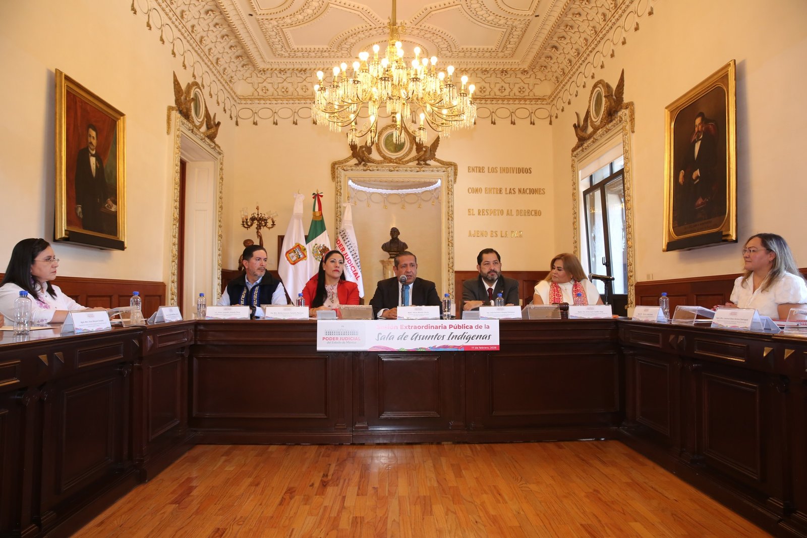La sesión se llevó a cabo en el Salón de Plenos del Palacio de Justicia, con la presencia de representantes de los tres poderes del Estado de México. Asistieron, entre otros, el magistrado presidente del Tribunal Superior de Justicia, Héctor Macedo García; la diputada Martha Azucena Camacho Reynoso, presidenta de la Mesa Directiva de la LXII Legislatura; el diputado José Francisco Vázquez Rodríguez, presidente de la Junta de Coordinación Política; el presidente de la Comisión de Derechos Humanos del Estado de México, Víctor Leopoldo Delgado Pérez; y el director del Instituto de la Defensoría Pública, José Carlos Neira Cruz, en representación del Ejecutivo estatal.
