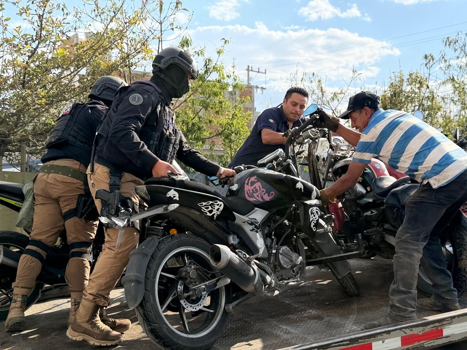 En tanto, las motocicletas y autopartes aseguradas fueron trasladadas a instalaciones de la Fiscalía, donde permanecerán bajo resguardo. Se realizarán peritajes para establecer su procedencia y verificar si están relacionadas con carpetas de investigación por robo de vehículo.