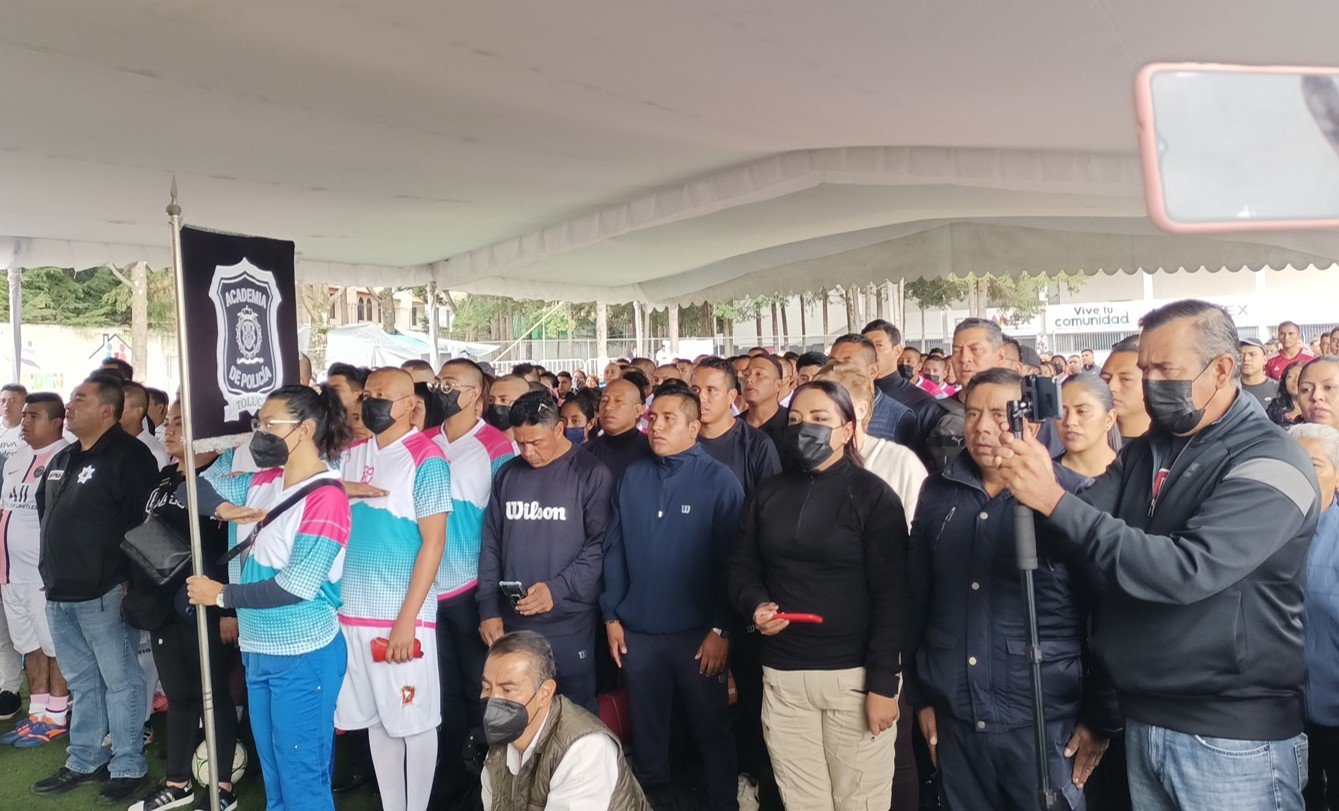 Metepec, Edoméx, 20 de agosto de 2022.- Alrededor de 700 policías en activo de corporaciones municipales mexiquenses, de la Ciudad de México y de la Secretaría de Seguridad estatal se enfrentan en Metepec en una convivencia deportiva para estrechar lazos y combatir el estrés del trabajo diario.