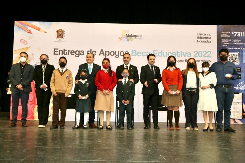 Metepec, Edoméx, 22 de agosto de 2022.- En el “Pueblo Mágico” arrancó la entrega de becas para un total de 3 mil 949 estudiantes de nivel básico, medio superior, superior, estudios de posgrado y hasta para quienes estudian en programas del INEA, que respondieron a la convocatoria y cumplieron con los requisitos que se establecieron en la misma.