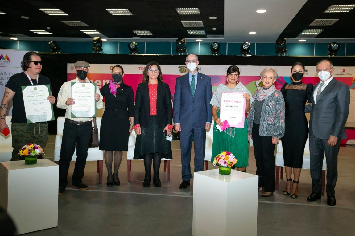 Toluca, Edoméx, 26 de agosto de 2022.- Este día inició la Feria Internacional del Libro del Estado de México en el Centro de Convenciones del Edoméx, donde en el marco de la inauguración se entregó el Premio FILEM 2022 a la escritora mexicana Valeria Luiselli de manos del rector de la Universidad Autónoma del Estado de México (UAEMéx), Carlos Eduardo Barrera Díaz; la secretaria de Cultura y Turismo estatal, Marcela González Salas, y el alcalde de Toluca, Raymundo Martínez Carbajal.