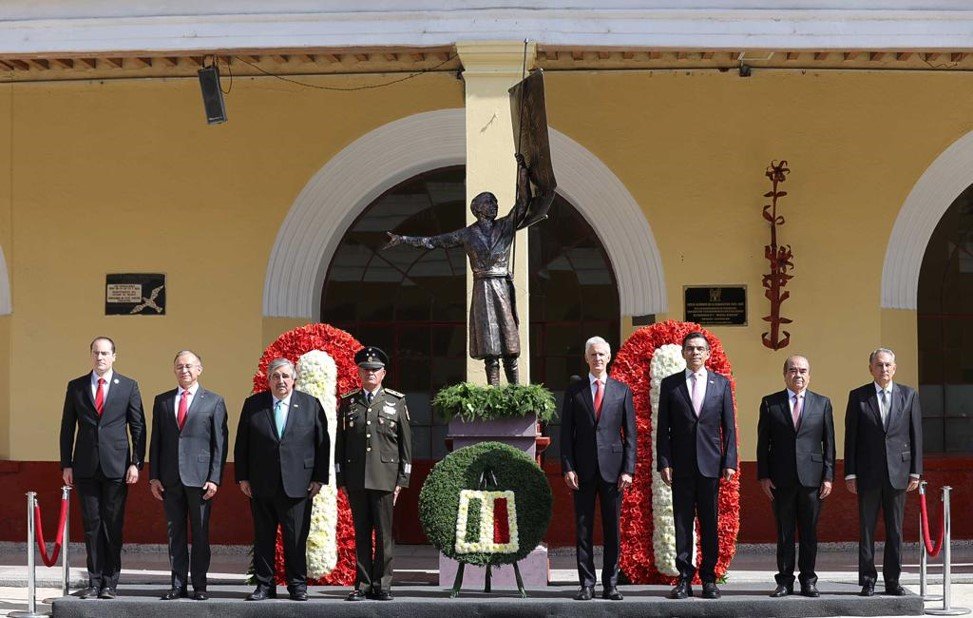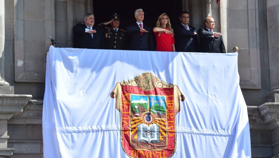 En este acto cívico también estuvieron con el Gobernador, reunidos en el Salón del Pueblo de la sede del Poder Ejecutivo, los integrantes del Gabinete estatal, así como José Luis Cervantes Martínez, Fiscal General de Justicia, Carlos Eduardo Barrera Díaz, Rector de la Universidad Autónoma del Estado de México y el General de Brigada D.E.M. Federico San Juan Rosales, Comandante de la 22/a Zona Militar.