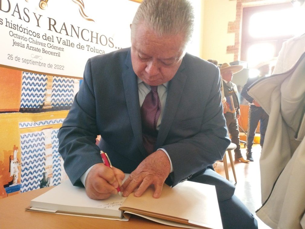 Toluca, Edoméx, 27 de septiembre de 2022.- Fue presentado en el centro cultural Toluca el libro Haciendas y ranchos, testimonios históricos del Valle de Toluca, editado por el Conalep y Tirant humanidades. Se trata de una obra conmemorativa al bicentenario de la consumación de la independencia de México.