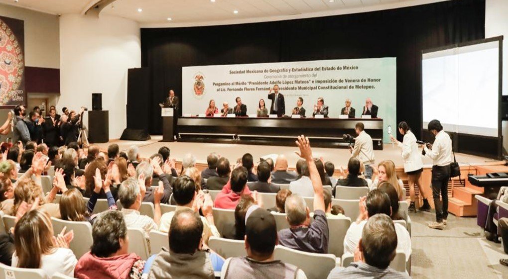 Metepec, Edoméx.- Por su íntegro y exitoso papel al frente de un ayuntamiento que vislumbra prosperidad para Metepec, así como por su actuar, trabajo, dedicación, compromiso con su pueblo, resultados y sobre todo, la calidad humana que le distingue, la Sociedad Mexicana de Geografía y Estadística del Estado de México (SOMEGEM), otorgó el Pergamino al Mérito «Presidente Adolfo López Mateos» e imposición de Venera de Honor al alcalde de Metepec, Fernando Flores Fernández.