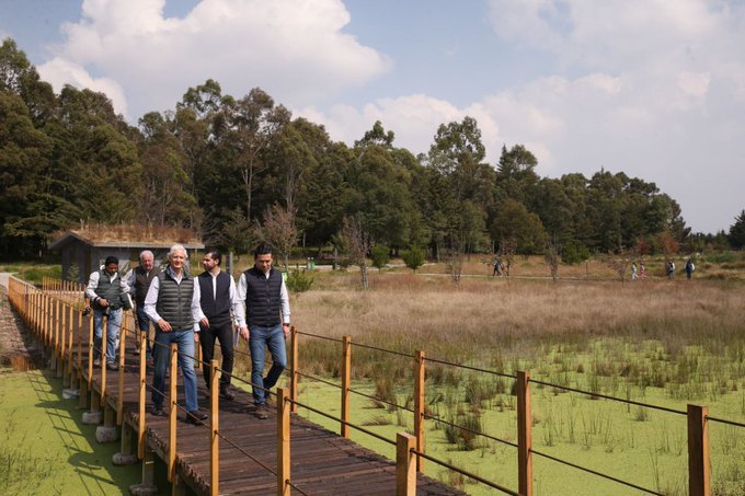 En un recorrido en compañía de los Secretarios de Desarrollo Urbano y Obra, y del Medio Ambiente, Rafael Díaz Leal Barrueta y Jorge Rescala Pérez, así como también del alcalde de Toluca, Raymundo Martínez, se revisaron las instalaciones, incluido el lago a donde llegan cientos de aves migratorias, como el pelicano americano y el pato mexicano.