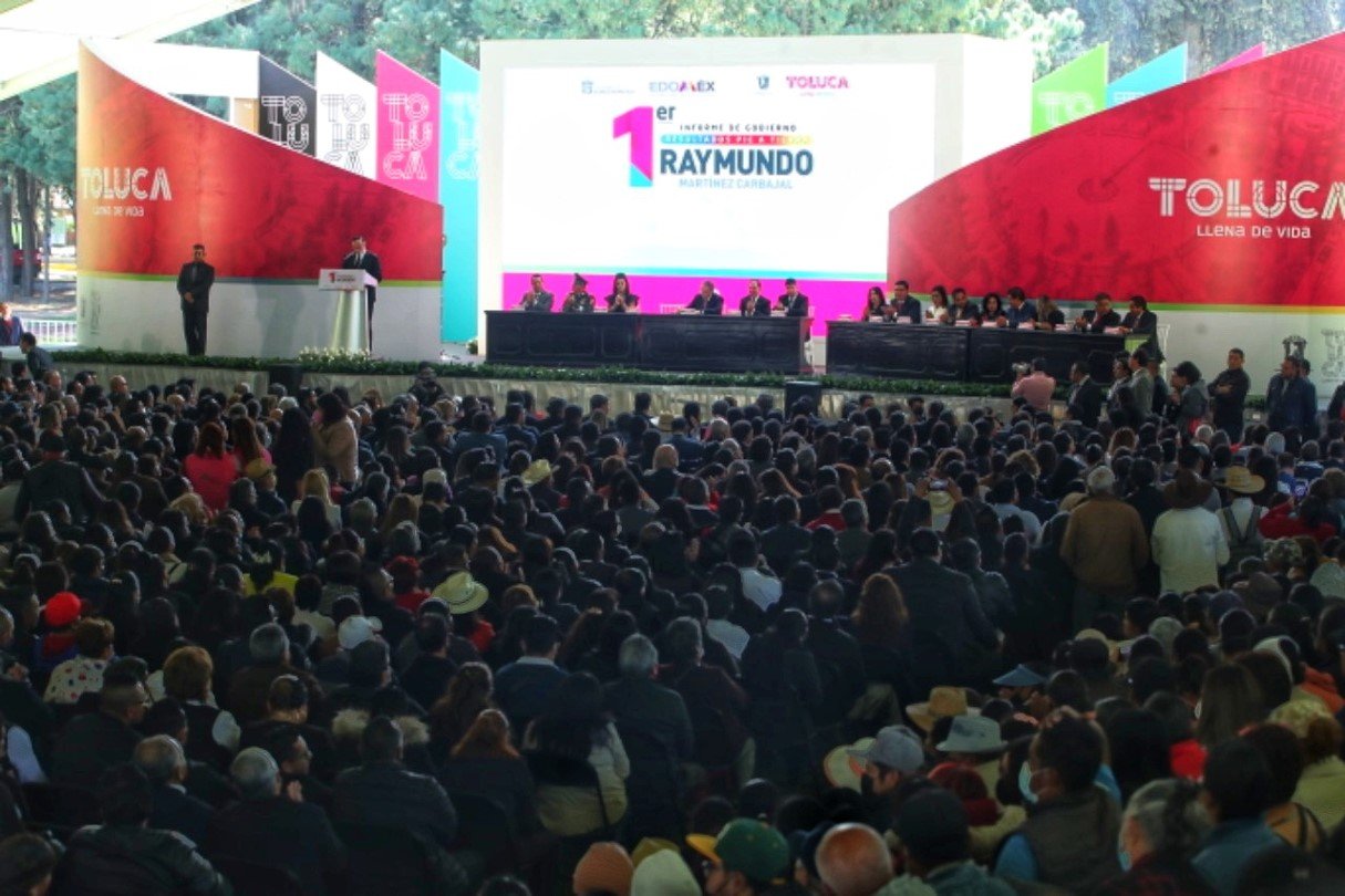 Toluca, Edoméx.- Al presentar su Primer Informe de Gobierno, actividades pie a tierra Raymundo Martínez Carbajal presidente municipal de Toluca, destacó que los logros del primer año, tienen el mismo objetivo, que Toluca sea una ciudad referente en México.