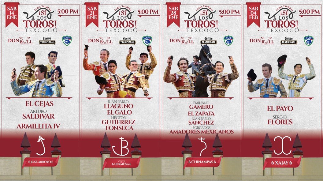 Habrá novilladas el 18 de febrero así como el 4 y 18 de marzo, en las que se integrarán a José Alberto Ortega, Diego Garmendia, Enrique de Ayala, José Miguel Arellano, Rodrigo Ortíz, Emiliano Osornio, Efrén Cabrera, Paco de la Peña, “El Ardillo”, Luis Farfán, Juan Francisco “El Papo” Kevin Loyo, Juan Querencia, Diego Alarcón, “Lolo” Gutierréz y “Tato” Loaiza.