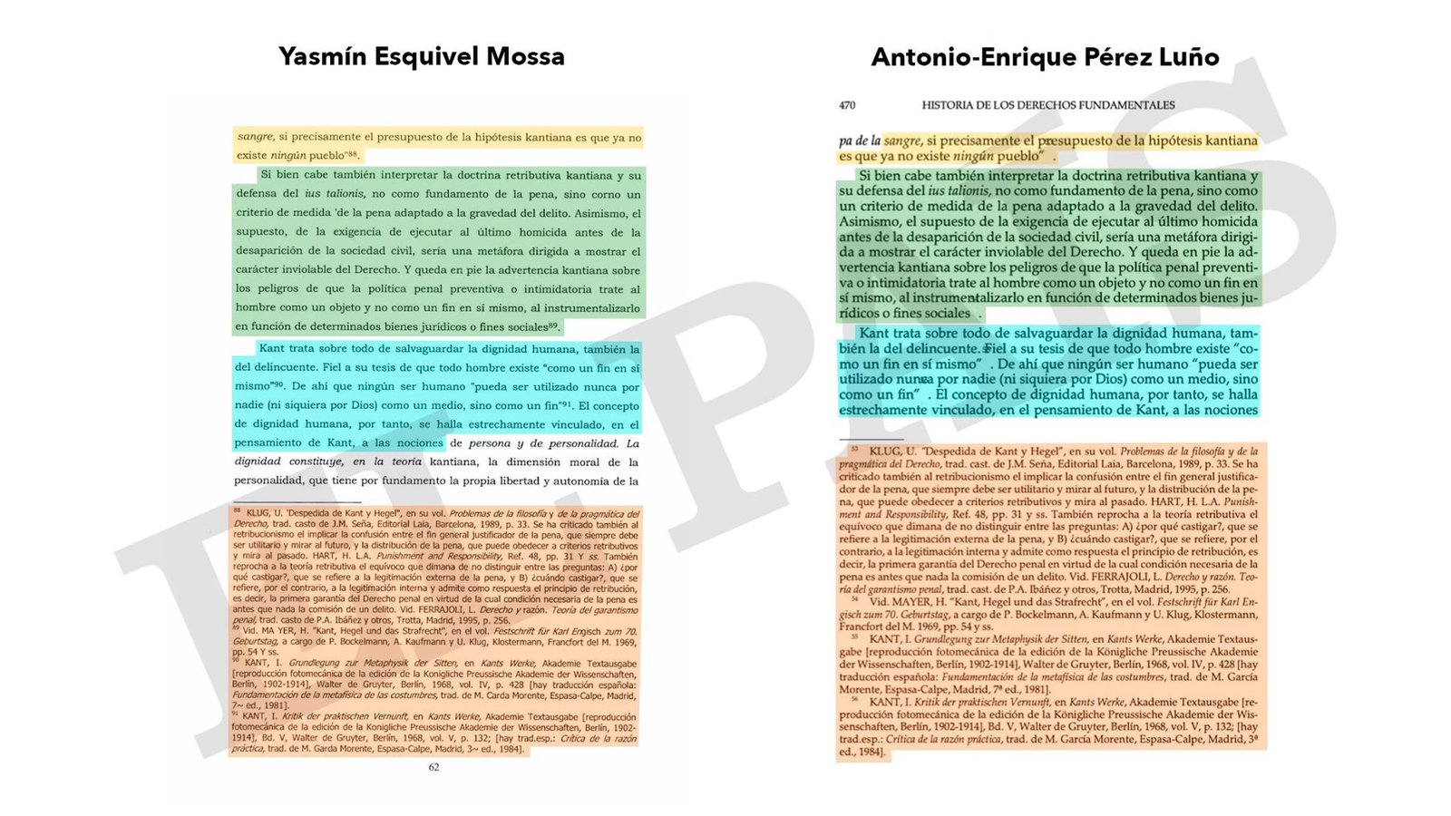 No obstante que los académicos a quienes recientemente se les pidió evaluar la tesis de forma ciega (sin conocer quien era la autora), coincidieron en que no se trata de un error de citación, pues la estudiante, se plagió literalmente hasta las notas al pie de página, en copias literales que se presentan en fragmentos de páginas enteras, en una situación que incluso catalogaron como «de mala fe».