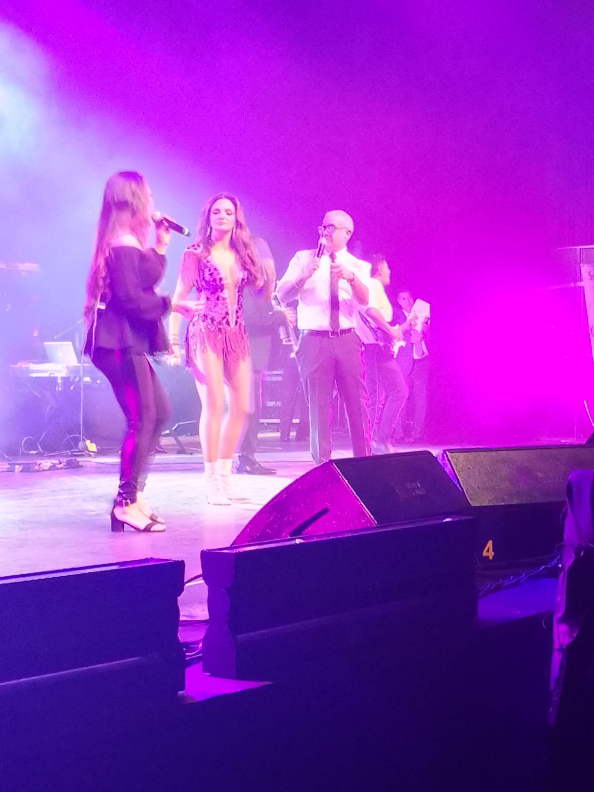 En presencia del Secretario General del Sindicato Nacional de Trabajadores de la Educación Sección 17, Eliud Terrazas Ceballos y ante un Teatro Morelos que lució lleno, la actriz y cantante delito a los maestros presentes durante más de hora y media con canciones como seré una choca buena, que no me faltes tú, me equivoque, la chismeasdera, así como canciones de Juan Gabriel.