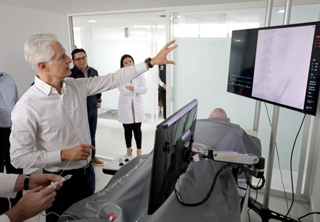 Jorge Guerrero Aguirre, Coordinador de Servicios de Salud del ISSEMYM, explicó que este Centro es el primero en Latinoamérica para formar médicos en adiestramiento con simuladores de última generación, lo que potenciará la seguridad del paciente en los procedimientos, ya que antaño los médicos practicaban algunas intervenciones en el mismo momento de hacerlas.
