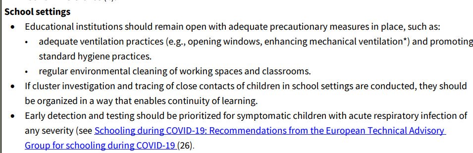 Cabe señalar que incluso, las más recientes recomendaciones de la Organización Mundial de la Salud (abril 2023), relativas a la pandemia del Covid-19, no enlistan al uso de cubrebocas, como una de las medidas recomendadas en los colegios; en cambio, sí se mantienen las recomendaciones de ventilación e higiene, la atención temprana de niños con síntomas, y el rastreo de contactos en los casos confirmados de C19.
