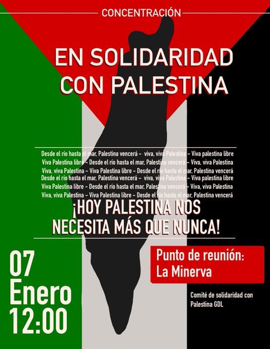 Diversas organizaciones sociales están convocando este domingo 7 de enero del 2024, a una protesta en la Ciudad de México, en rechazo al genocidio que sigue perpetrando diariamente el régimen israelí en Palestina.