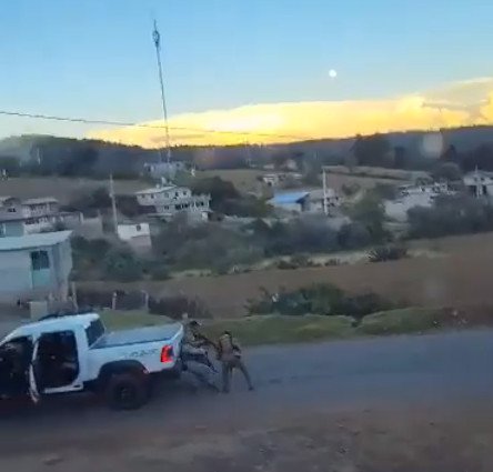 A través de redes sociales también circulan imágenes de la presunta balacera, donde se observa a sujetos con armas de grueso calibre, refugiándose de las balas en la parte posterior de una camioneta.