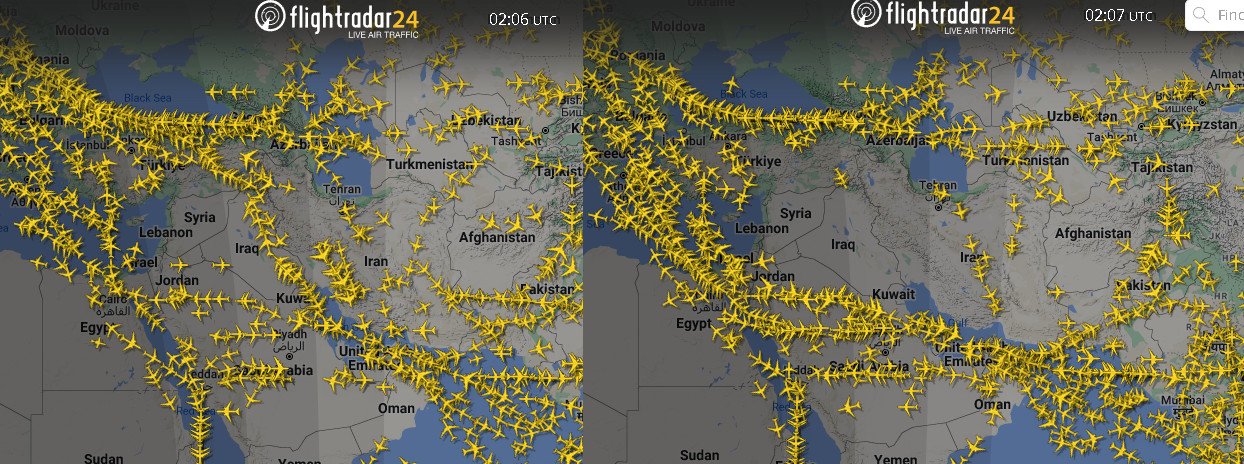 Ante el temor de escalada bélica en la región, y el uso de armas no convencionales, el tráfico aéreo en horas recientes también se ha visto alterado, con la gran mayoría de aerolíneas buscando evitar la región que se encuentra entre Irán e Israel.