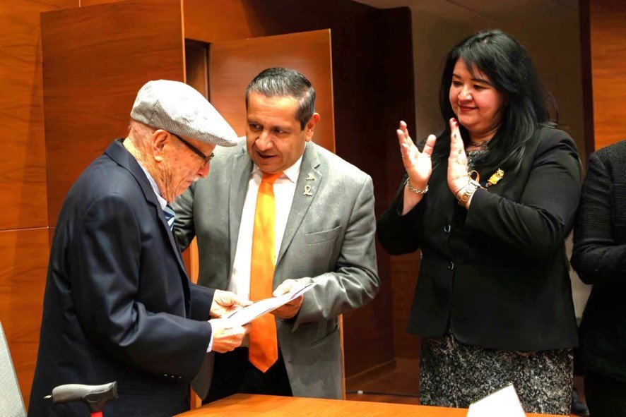 A esta presentación asistió el destacado jurista originario de Tenango del Valle, México, René Sánchez Vértiz, quien durante muchos años fue catedrático de diversas ramas del derecho, pero principalmente, de derecho romano en la Facultad de Jurisprudencia, hoy de Derecho de la UAEMex; juez y magistrado en el Poder Judicial del Estado de México, recibió un ejemplar del libro, dedicado a la memoria de su esposa, Esthela Ruiz Alanís.