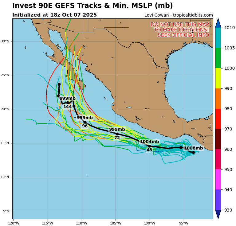 Al sur de la frontera Guatemala-México, Invest 90E muestra actividad tormentosa en desarrollo. Se mueve hacia el oeste-noroeste a 16-24 km/h (10-15 mph) y podría convertirse en depresión tropical en 48 horas, con un 80 % de probabilidad en siete días. Si se confirma, recibiría el nombre Raymond.