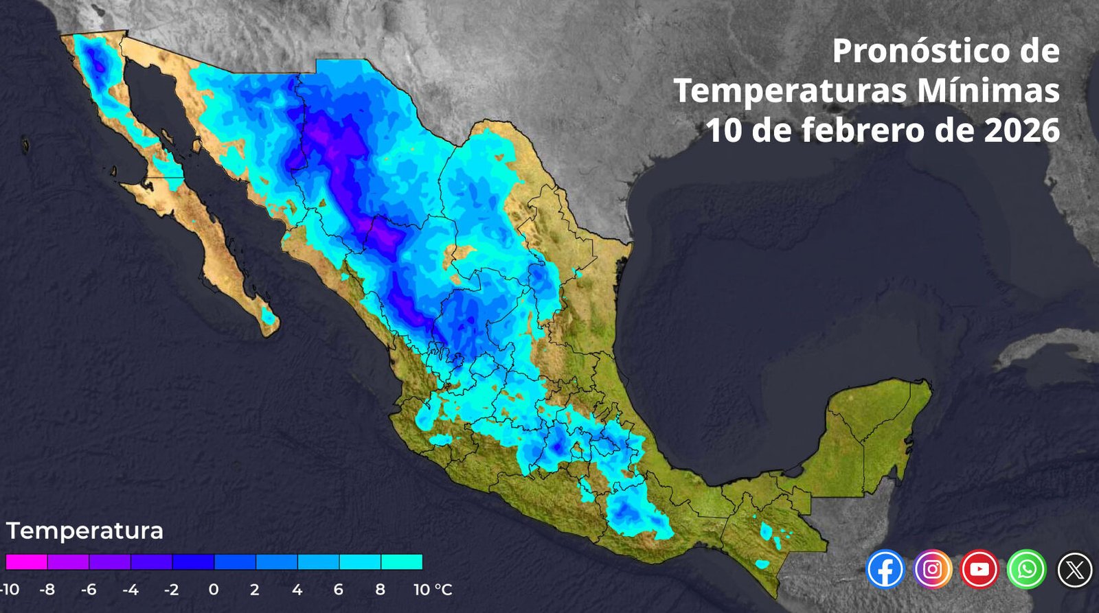 Además del descenso térmico, se prevén temperaturas mínimas bajo cero en regiones del norte y centro del país, con heladas en zonas serranas. En contraste, en algunos estados del occidente, sur y sureste se esperan temperaturas máximas que podrían alcanzar entre 35 y 40 grados Celsius durante la tarde.