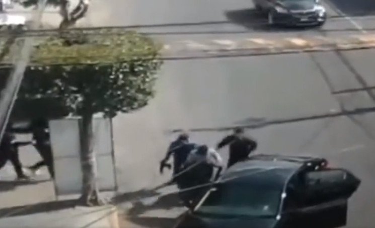 En las imágenes que circulan en redes sociales, se observa como varios sujetos con armas largas, descienden del vehículo, y después obligan a otro hombre a subirse al mismo auto a punta de pistola.