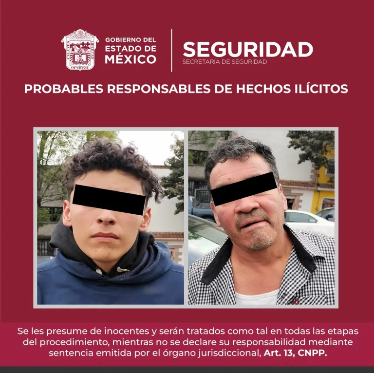 A solicitud de la víctima, los oficiales de la SS Edomex detuvieron a Jesús “N” y Javier “N” de 19 y 51 años de edad, respectivamente, mismos que podrían ser integrantes de una banda delictiva dedicada a cometer el delito de extorsión de manera recurrente en la zona, en agravio de empresas constructoras y naves comerciales.