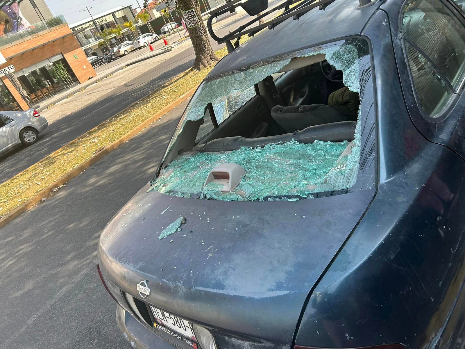 El sujeto, que amenazaba con agredirla físicamente, le reventó el parabrisas, los cristales de la parte posterior del vehículo y una de las ventanillas. Además de impactarla con su propio vehículo.