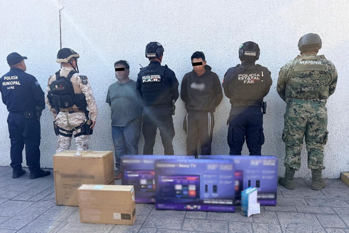 Elementos de la Secretaría de Seguridad del Estado de México (SSEM), en coordinación con la Secretaría de Marina (SEMAR) y la Policía Municipal, detuvieron a dos personas señaladas como probables responsables de un robo con violencia a un vehículo de transporte de carga en el municipio de La Paz, Estado de México.