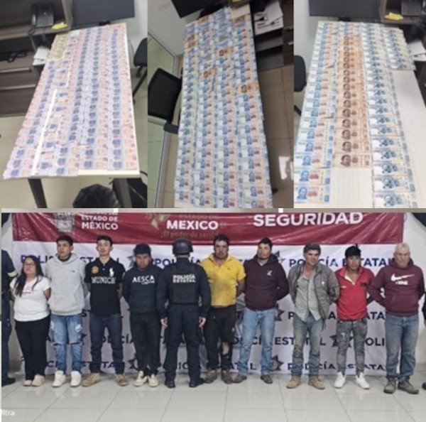 Los nueve detenidos, junto con el dinero, los vehículos y los objetos asegurados, fueron puestos a disposición de la Agencia del Ministerio Público con sede en Lerma, donde se inició la carpeta de investigación correspondiente.