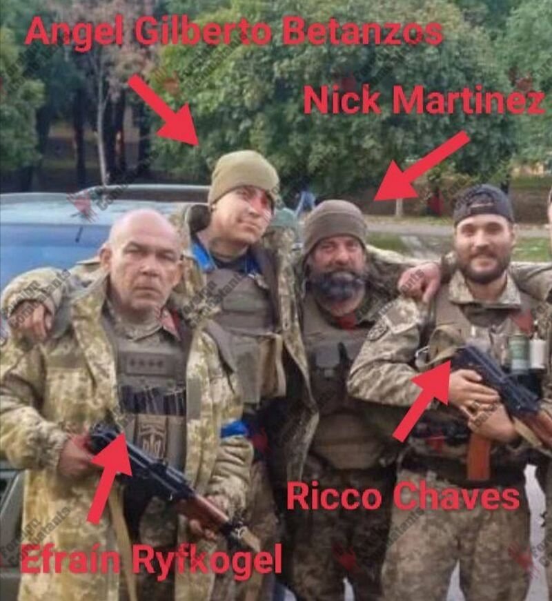 En el perfil de Facebook de Rico Chaves aparecía como foto de encabezado una imagen junto al mexicano Ángel Betanzos, ratificando la estrecha relación existente entre este grupo, donde también participaban otros latinoamericanos como Taras Kuzmin —hermano mayor de Nazar—, además de varios colombianos, ecuatorianos, panameños y combatientes de otras nacionalidades.