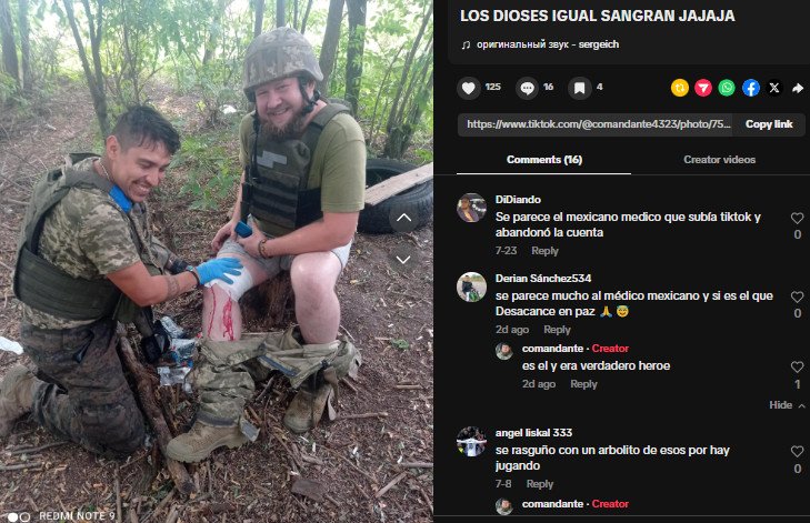 Fue precisamente Nazar Kuzmin quien hace unos días publicó una fotografía en su canal de TikTok siendo atendido por el mexicano Betanzos. En esta publicación, alguien hizo alusión a que parecía ser el paramédico mexicano, lo cual fue confirmado por Kuzmin, quien señaló que había sido «un verdadero héroe», refiriéndose a él en pasado y respondiendo de forma positiva a esta publicación donde se hacía un llamado para que «descansara en paz».