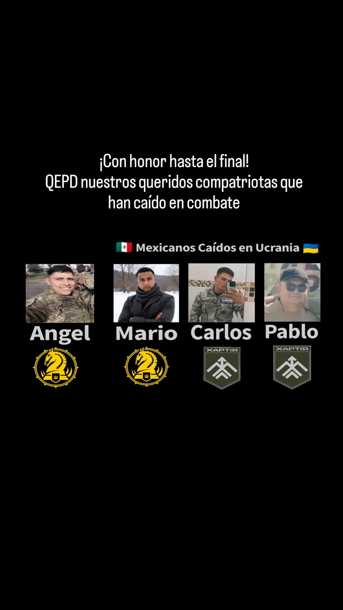 La confirmación de Kuzmin es solo una de las más recientes provenientes de integrantes que pertenecían a su círculo cercano; aunque también agrupaciones militares de mexicanos en Ucrania, como @miquiztliforcemx, lamentaron también la muerte de Ángel Gilberto, destacándolo como un mexicano más caído en combate, al igual que los casos anteriormente confirmados: Carlos González Mendoza, Pablo Orozco y más recientemente del ex policía federal, Mario Alberto Lover.