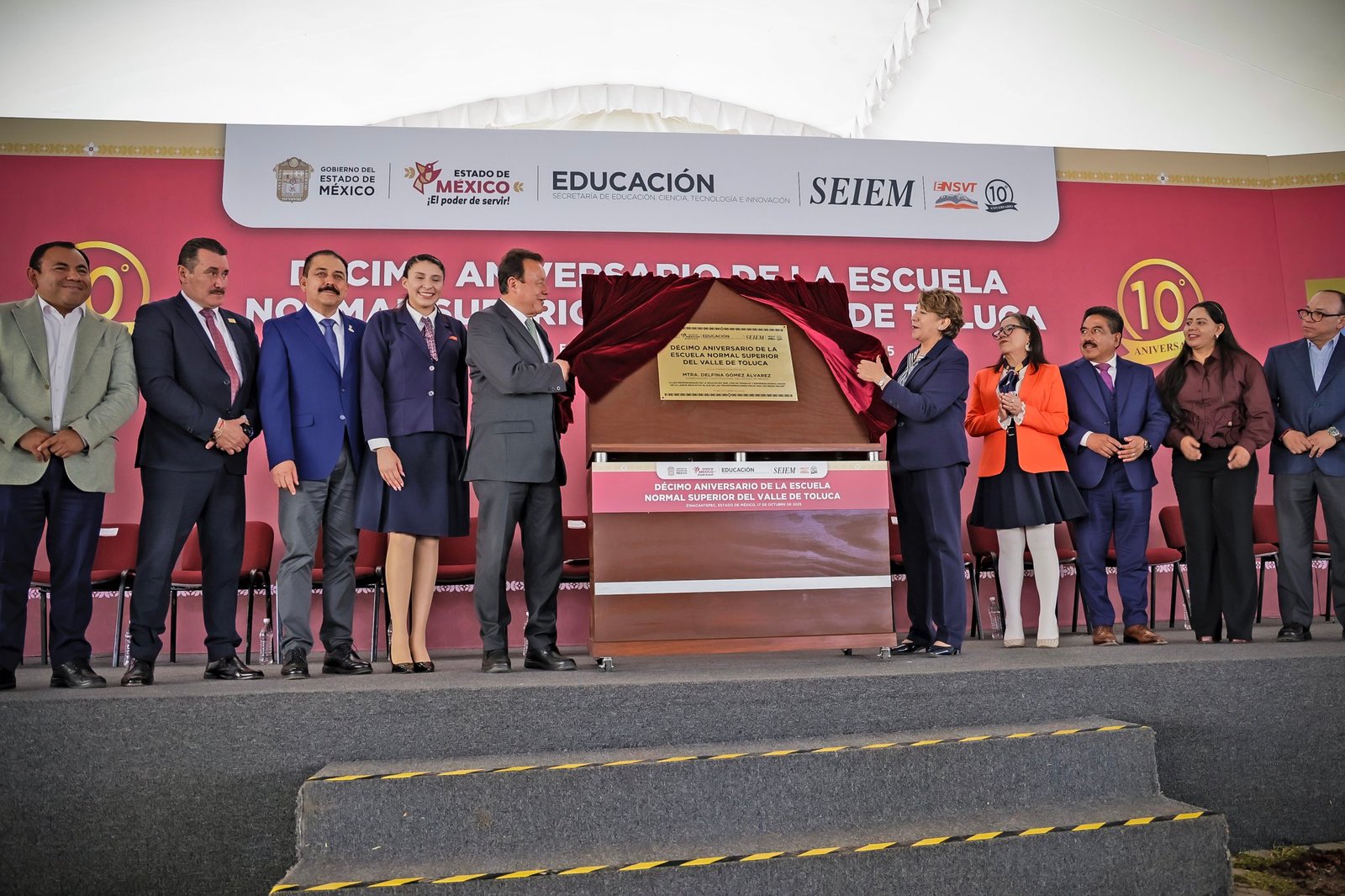 La Escuela Normal Superior del Valle de Toluca celebró su décimo aniversario con una ceremonia encabezada por la gobernadora Delfina Gómez Álvarez, quien reconoció la vocación, el compromiso y la labor formadora del magisterio mexiquense, al que definió como “pilar de la transformación social y educativa del país”.