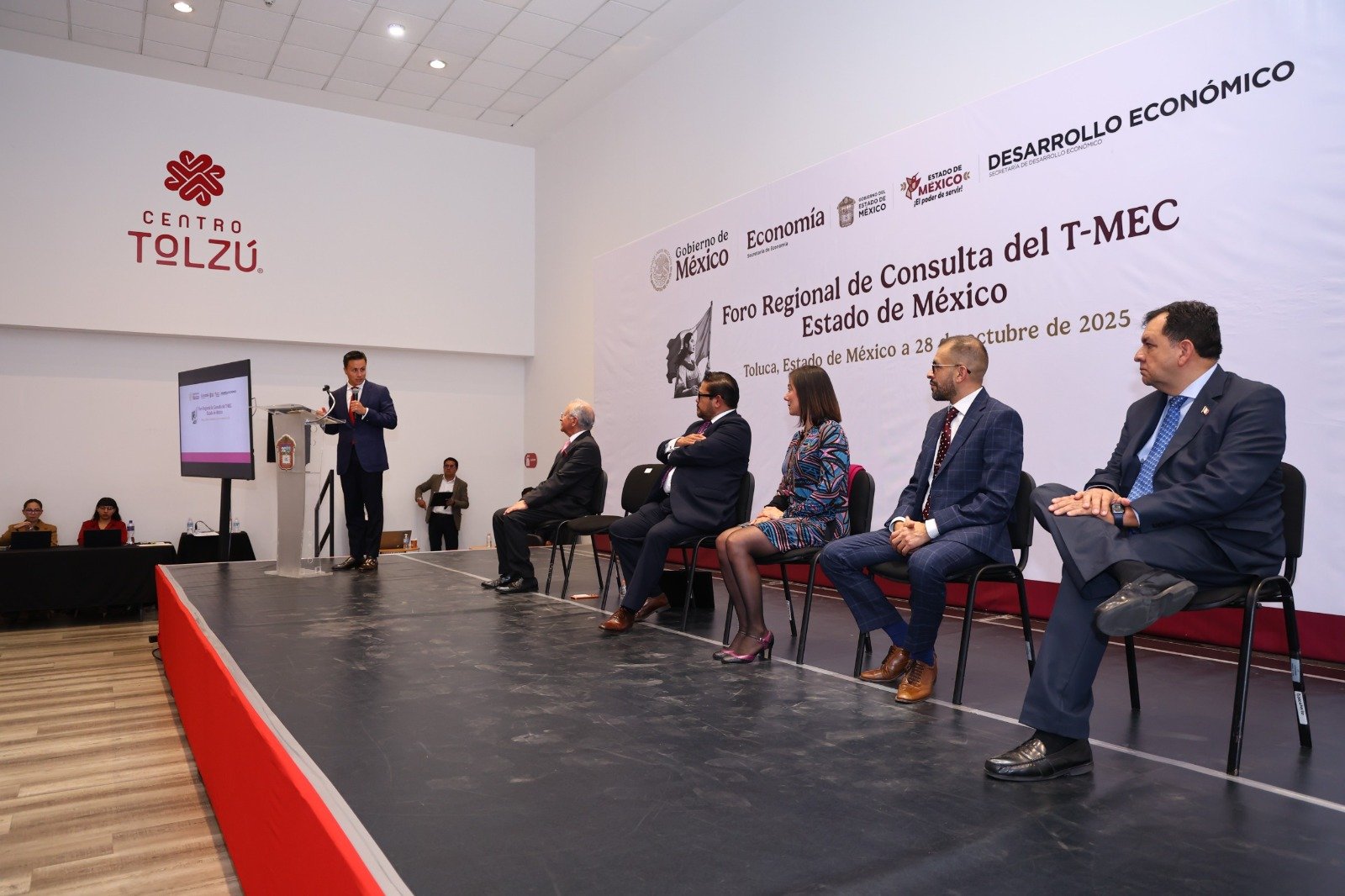 Con el propósito de fortalecer la participación del Estado de México en la revisión del Tratado entre México, Estados Unidos y Canadá (T-MEC), el gobierno encabezado por Delfina Gómez Álvarez, a través de la Secretaría de Desarrollo Económico (Sedeco), llevó a cabo el Foro Regional de Consulta del T-MEC Estado de México, un espacio de diálogo con sectores productivos, académicos y sociales.