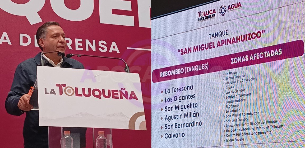 Toluca, Edoméx.- Toluca vio el día de hoy una jornada de anuncios relevantes en La Toluqueña de este día. Para iniciar, el Alcalde Ricardo Moreno informó sobre la rehabilitación integral del tanque Apinahuizco, considerado el centro de distribución de agua potable para la zona Centro y Poniente de la capital mexiquense. El alcalde detalló que los trabajos incluyen la aplicación de recubrimiento epóxico especializado para garantizar la calidad del agua, este cuenta con un proceso de secado de 48 horas, por lo que se tiene programado el llenado del tanque para la madrugada del sábado 22 de noviembre.