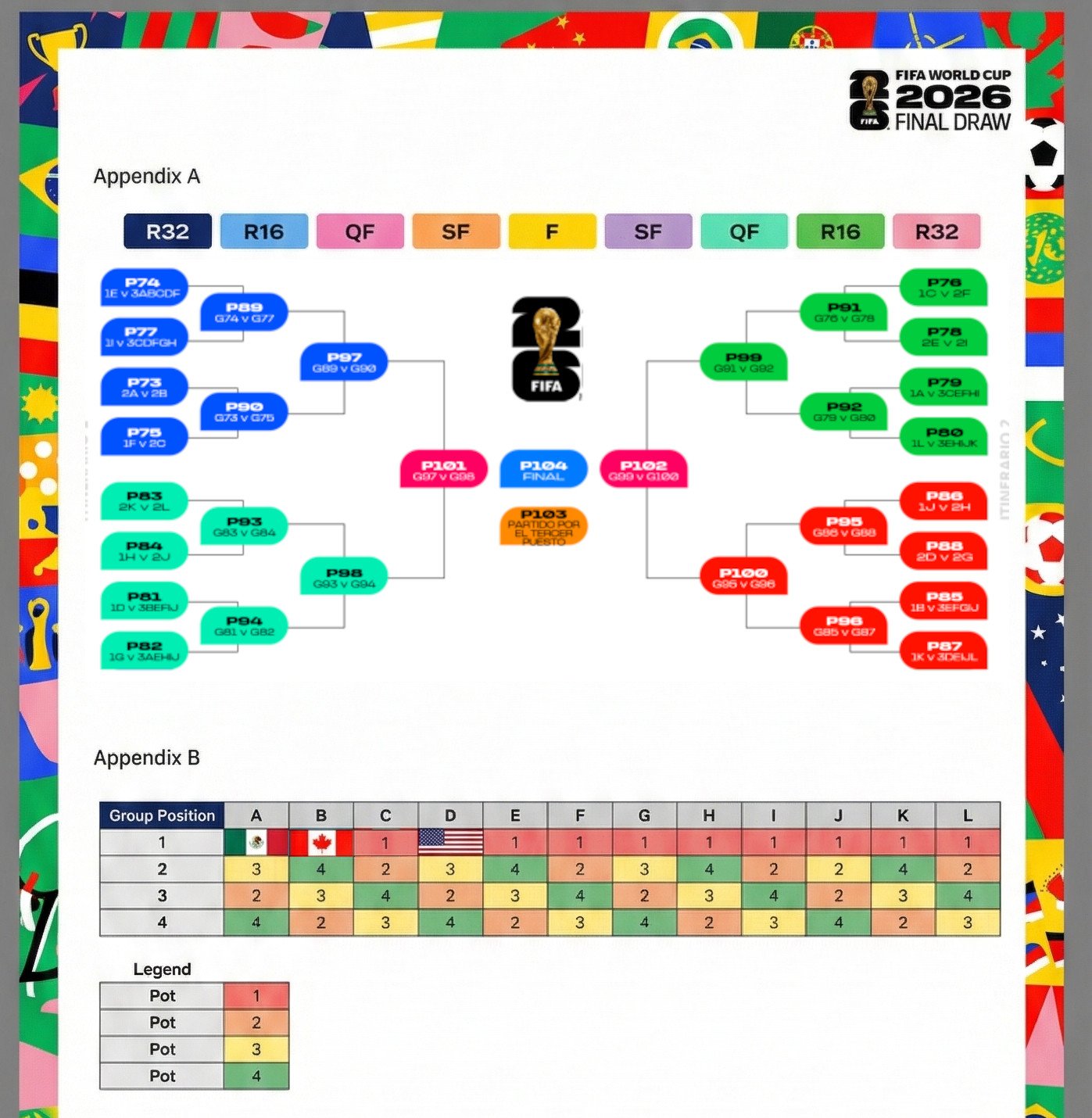 Paralelamente, la FIFA estableció un mecanismo inspirado en sistemas de siembra del tenis para evitar que los equipos más fuertes (ranking 1 vs. 2, o 3 vs. 4) puedan enfrentarse antes de la final. Esta estructura, totalmente nueva en Copas del Mundo, distribuye a los líderes del ranking en zonas opuestas del cuadro para asegurarse de que, si avanzan, lo hagan sin cruzarse entre sí hasta el último partido.