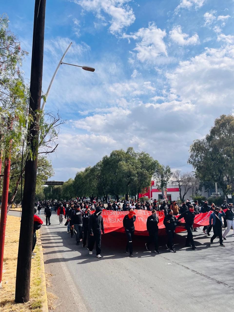 Los estudiantes marcharon de forma pacífica con consignas y mantas rechazando cualquier acto de represión hacia el movimiento estudiantil. Particularmente se trató de normalistas afiliados a la Federación de Estudiantes Campesinos Socialistas de México (FECSM), quienes se unieron para alzar la voz y exigir que nunca más se vuelvan a cometer actos de esta naturaleza.