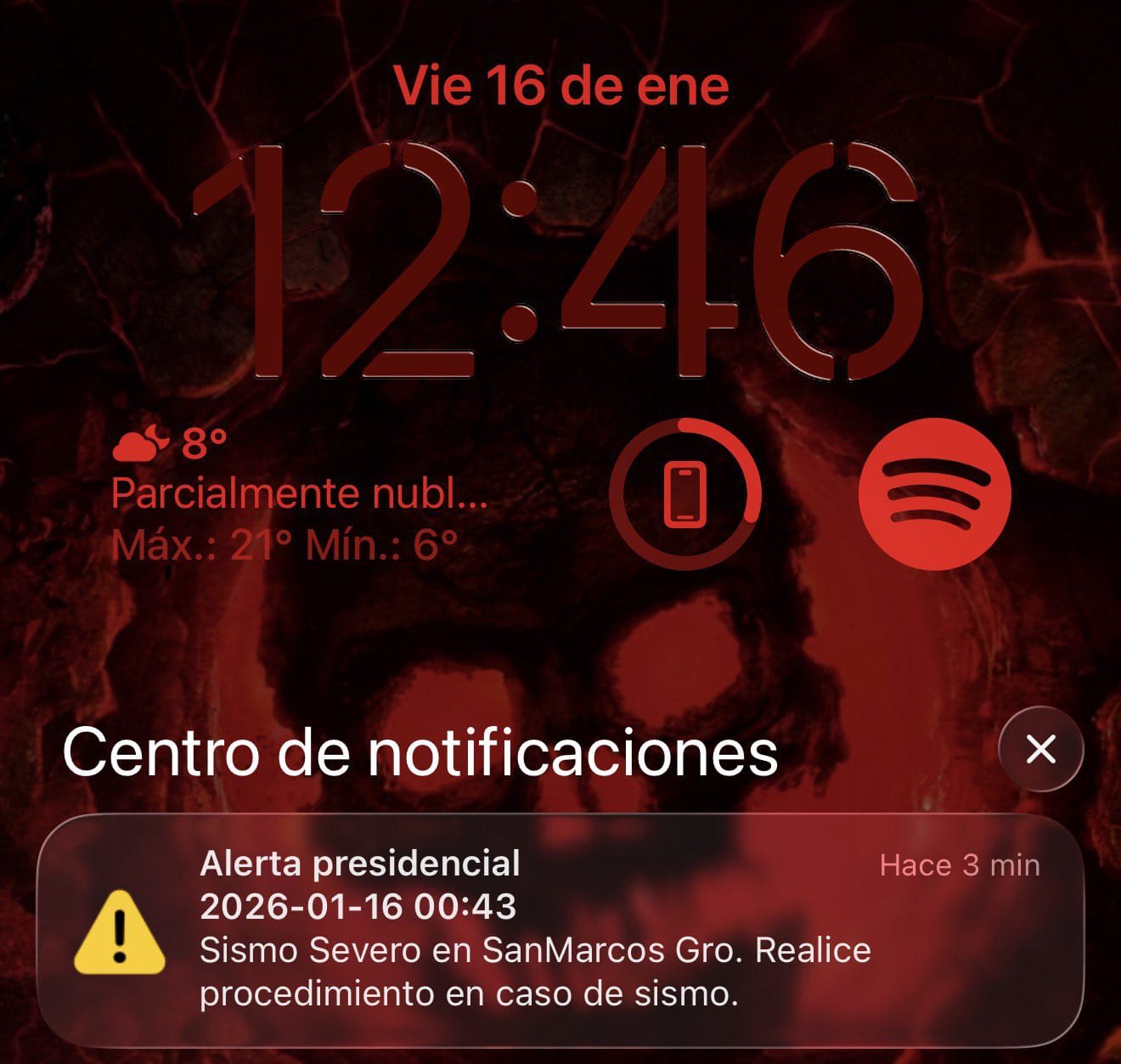 La alerta sísmica sonó entre las 00:46 y 00:48 horas, tanto en altavoces públicos como en teléfonos celulares mediante el sistema de de alerta presidencial