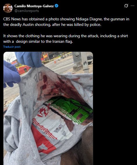 Una de las cuestiones que de inmediato llamó la atención fue que el sujeto, quien habría sido captado con cierta claridad por la cámara de un vehículo Tesla en las inmediaciones del tiroteo, portaba una sudadera con la frase «Propiedad de Alá» y tenía al interior el diseño de una bandera iraní. Según versiones preliminares, también llevaba un Corán en el automóvil, lo que apuntaba a tratar de establecer un perfil de extremista religioso.